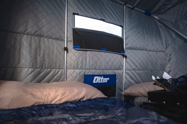 Otter XTR X-over shelters feature an industry first reclining bench seat that provides added versatility to already best-in-class comfort. The XTR Resort Sleeper X-Over gives ice anglers the option to transform the best mobile fishing shelter system into an ice camping setup in seconds. Fold the 3-piece bench flat for a single sleeper position or quickly & easily attach the headrest and cot sections to create a 2-man sleeper.